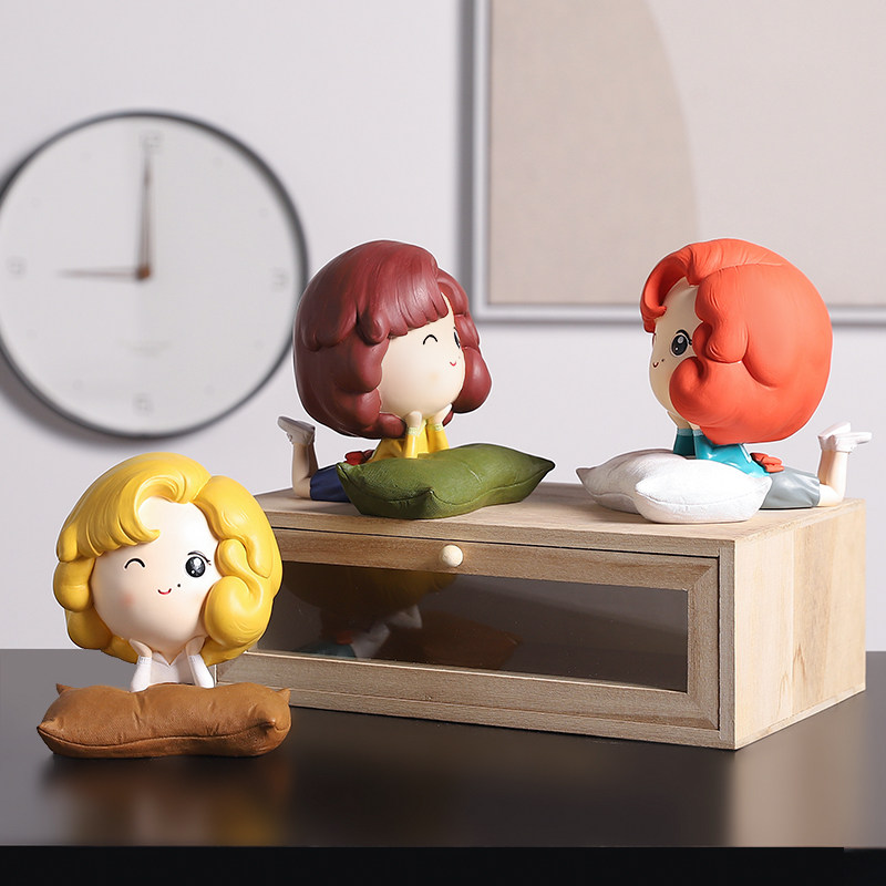 Green pillow lying position White pillow lying position Red skirt standing position Fluorescent skirt standing position Brown pillow lying position Light yellow single piece