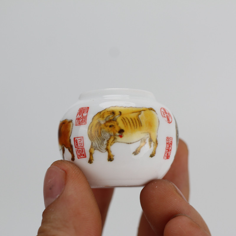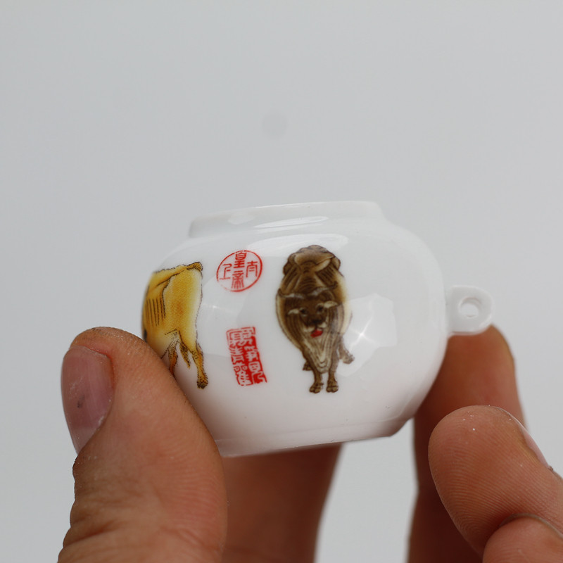 Hand-painted bird food bowl cup porcelain bowl bamboo bird cage red shellfish embroidered eye willow warbler bird hibiscus cow pattern bird cup