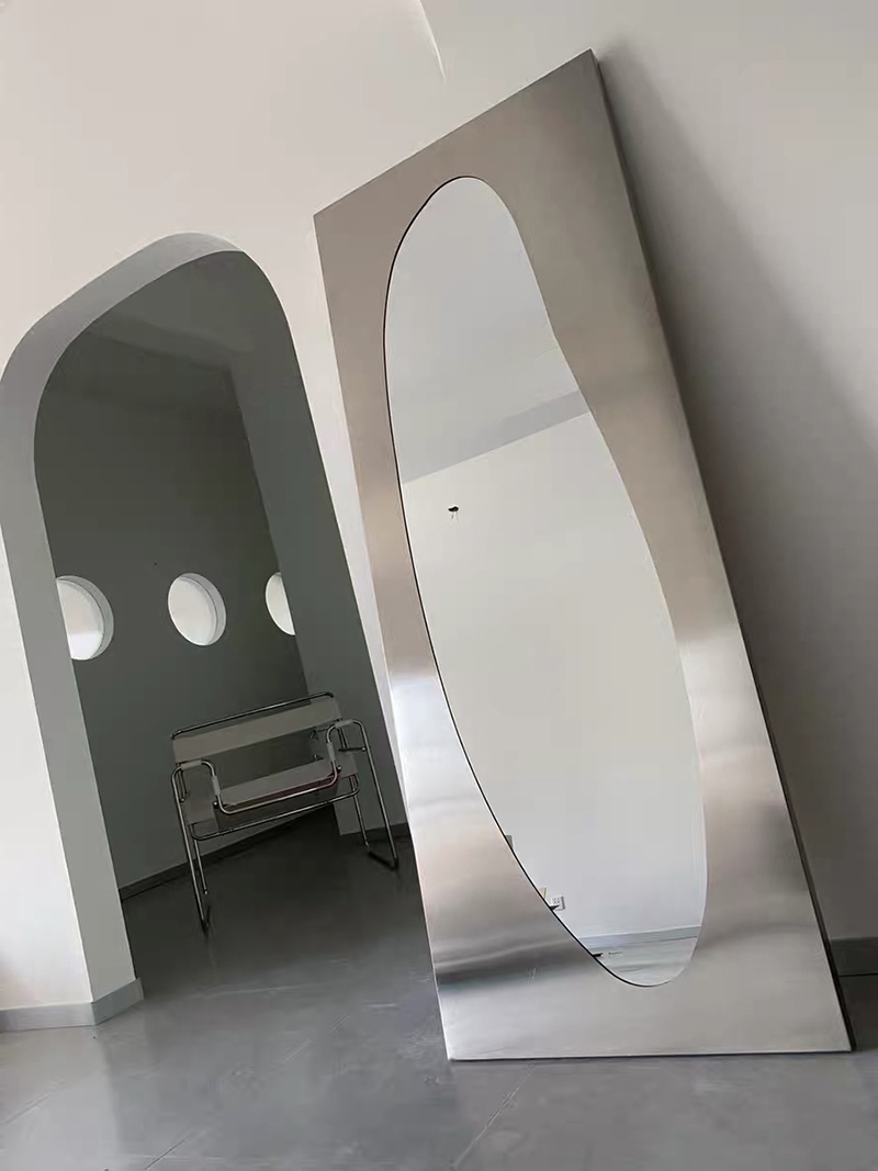 Nordic Minimalist Designer Stainless Steel Floor Mirror Clothing Shop Full Body Mirror Whole Body Mirror South Korea Online Red Photo Mirror