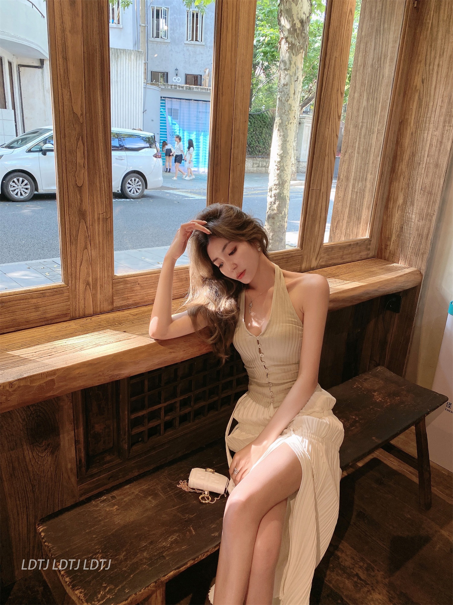 LDTJ high-definition skirt women 22 Xia Xin high design waist slim slim long legs temperament all-match slit pleated skirt