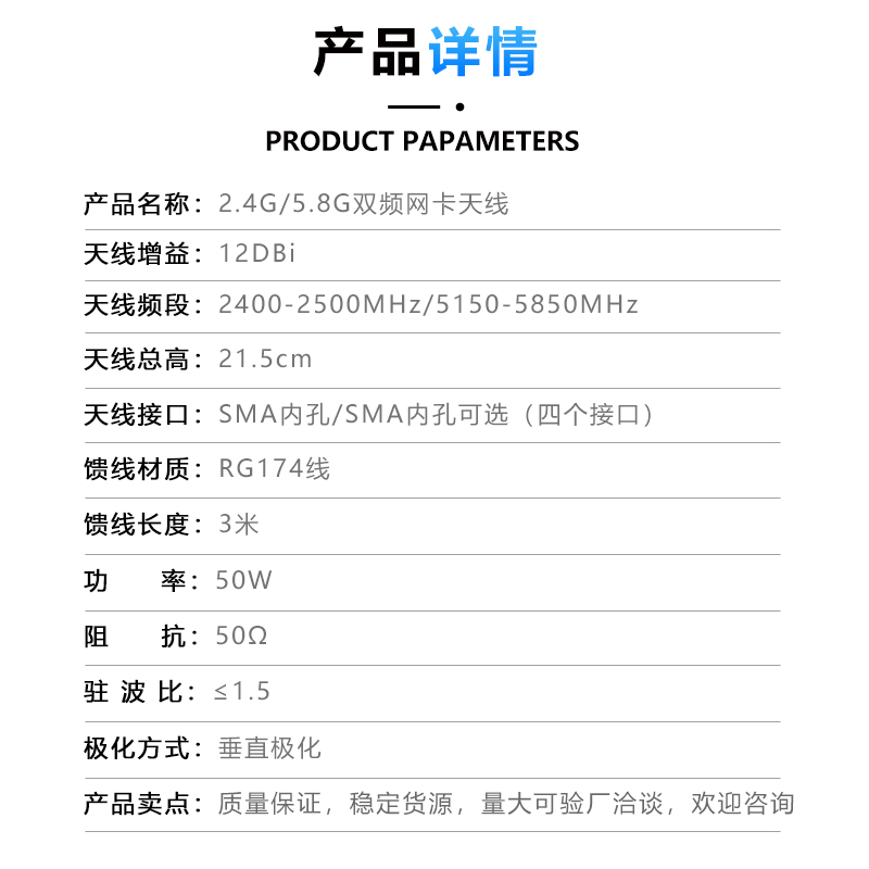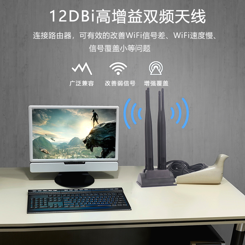 2 4G 5 8G Dual-frequency antenna 12DBI omnidirectional wireless network card WIFI router high gain extension signal