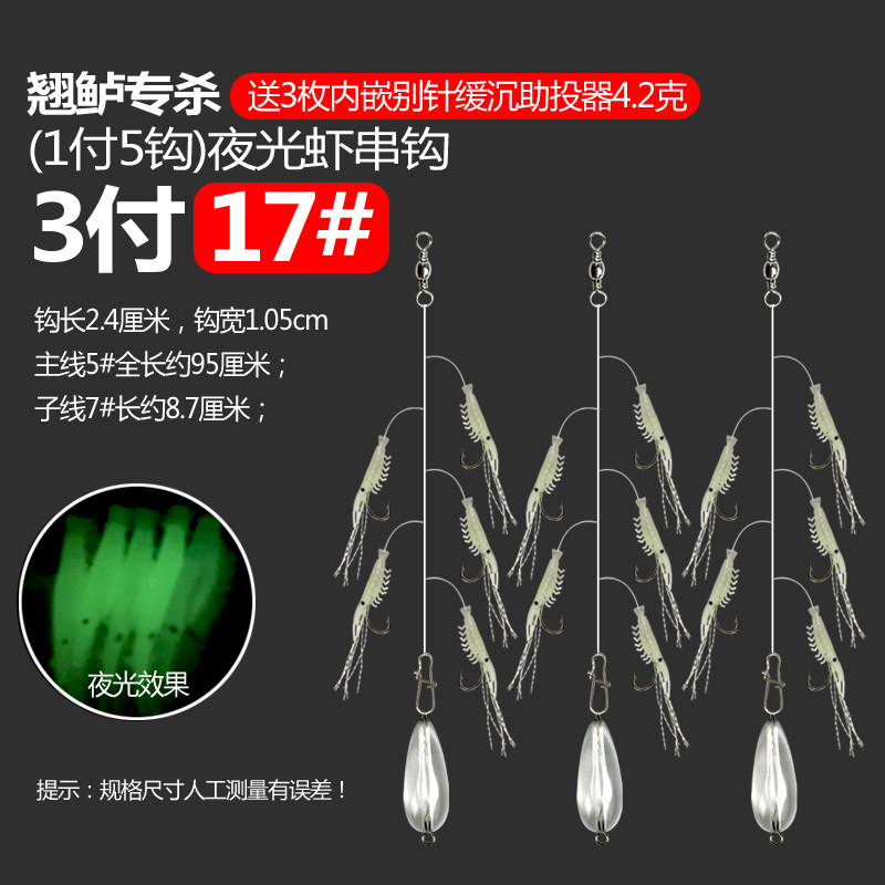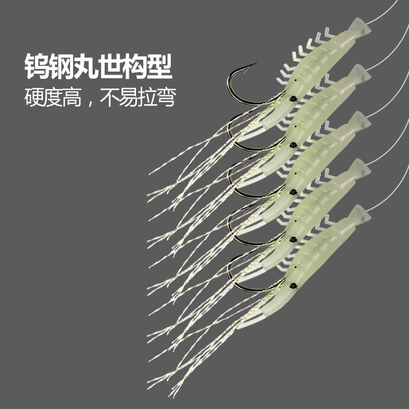 Fake shrimp string bionic shrimp luminous string hook Shi hanging shrimp skin sea fishing Luya boat fishing fluorescent shrimp bait white stripe mouth horse mouth