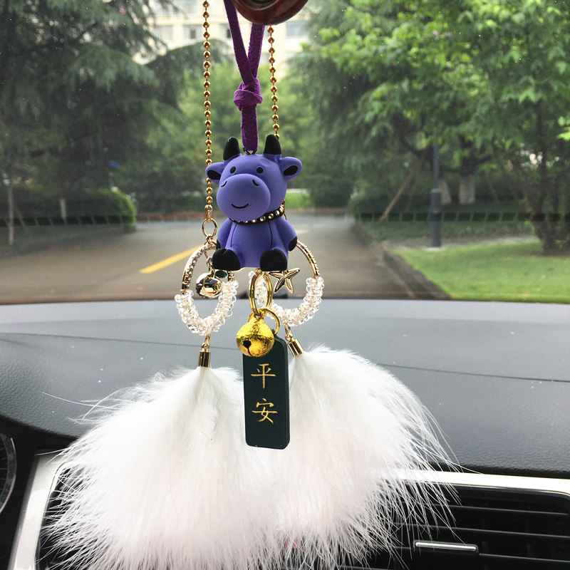 Net red calf car interior decoration Ping An Fuyun feather car pendant men's goddess rear mirror decoration