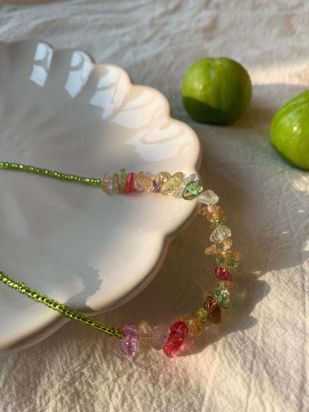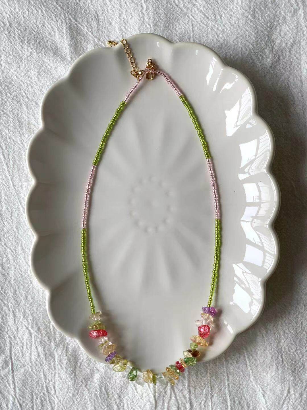 MadebyL Original design Little crowdsourced 100 Lapped Ornament Colorful String Beads Necklace invites you to eat sugar