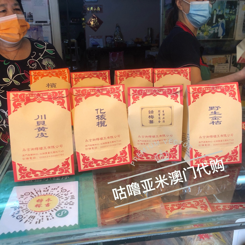 Full of 2 souvenirs, Macau Yongji Street, Chuan Fritillaria, tangerine peel, yellow peel, lemon king, soothing throat appetizing snacks