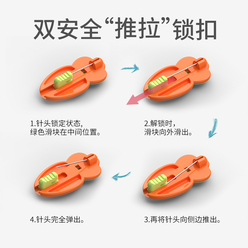 Dual Safety Design Kindergarten Baby Safety Pin Baby Large Size Brooch Colored Kickback Needle Carrot-Taobao