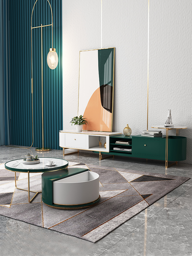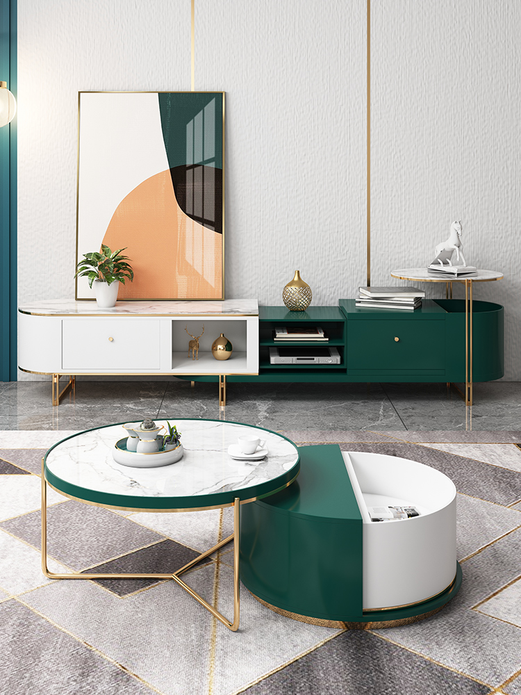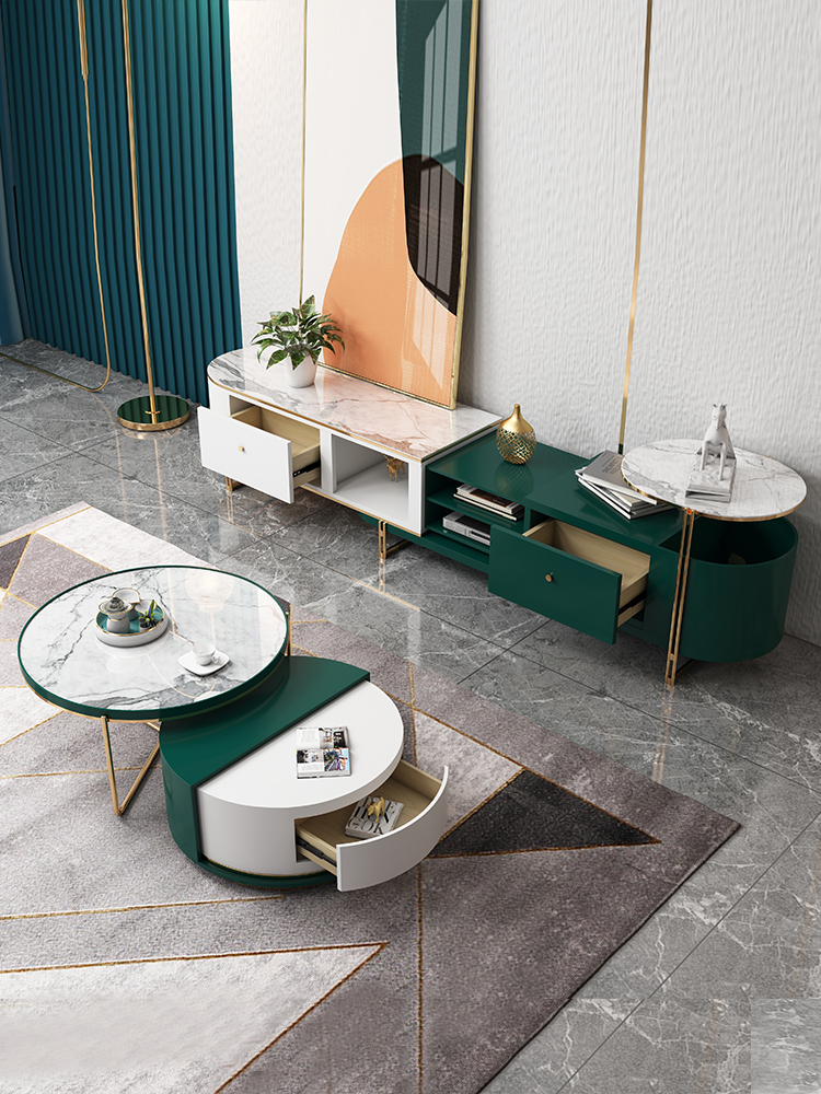 Fasati Nordic rock slab tea table TV cabinet combination home small apartment storage tea table simple modern net red style
