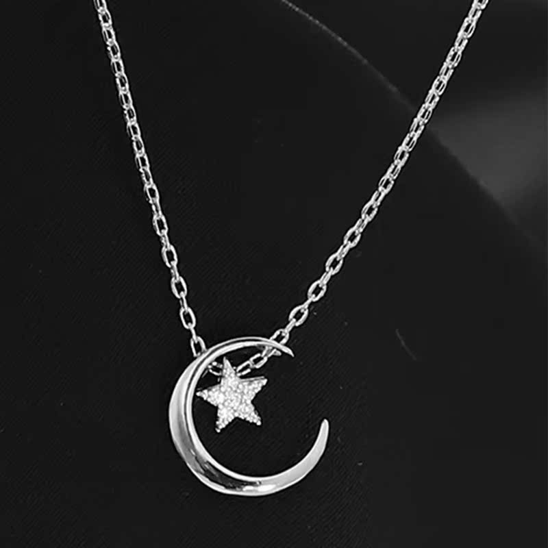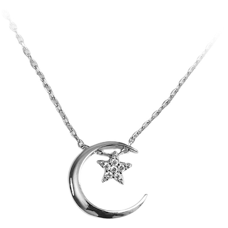 Platinum Color Flash Drilling Star Moon Necklace Rose Gold Flash Drilling Star Moon Necklace