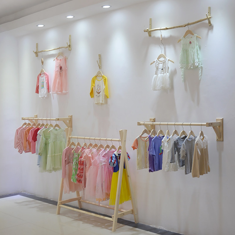 Clothing store display rack log color floor-to-ceiling hanger children's clothing store hanger display clothes rack clothing rack
