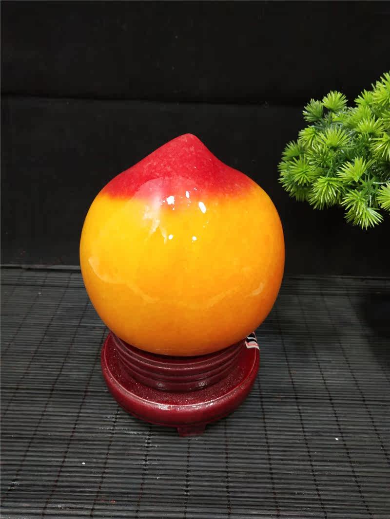 Boutique yellow Longyu Birthday Peach Pendulum Pieces Polished Yellow Wax Stone Original Stone Creative Home Office Chishi Stone Sculptures Sightseeing Stone
