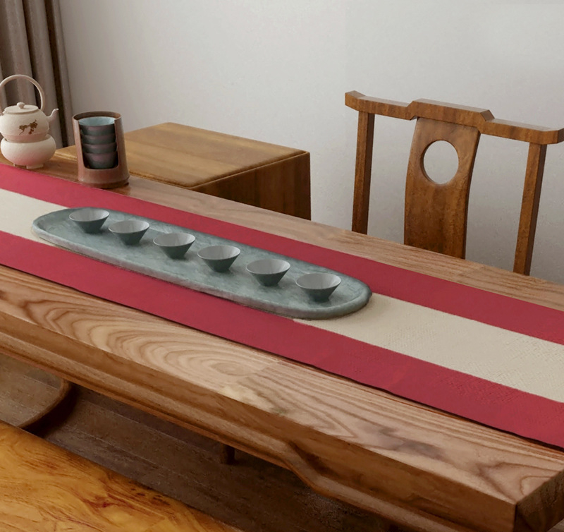 Modern minimalist High-end Thickened Tea Table Blue Red Table Cloth Table Flag Vegetarian Color Imitation Hemp Tea Cloth Tea Mat Nordic Wind