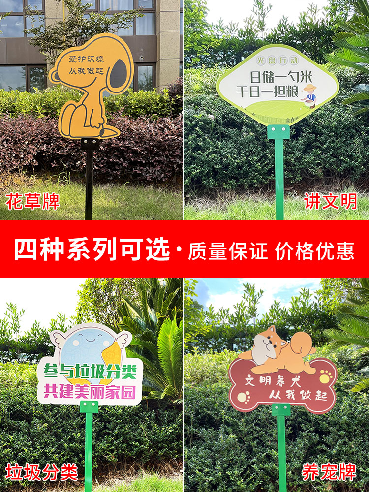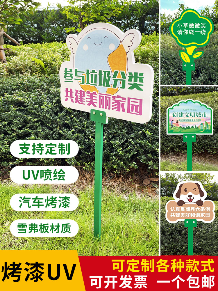 Garbage sorting reminder card custom park lawn flower card warm warning card love green outdoor billboard