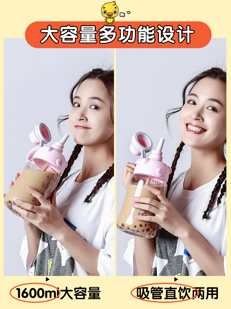 Large capacity water cup female summer 1000ml with straw high color value Cup portable cute personality Net Red Kettle