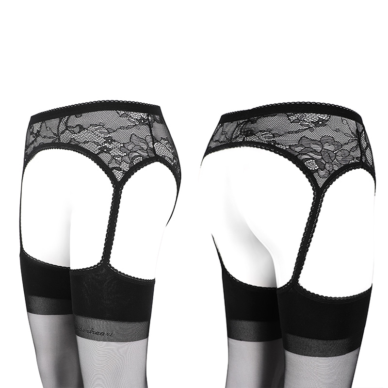 Spice Silk Socks Feminine black and white silk harness integrated long barrel socks lace opening-free Perspective Flirt Silk Socks