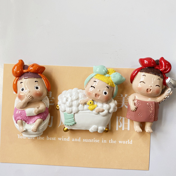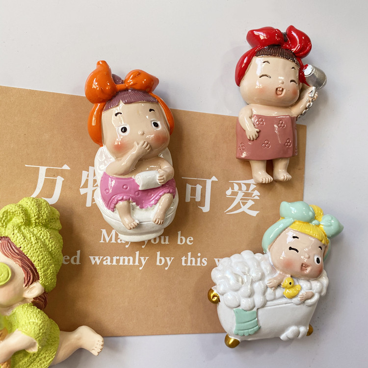 (4pcs)ins wind Nordic creative cute cartoon girl resin magnetic refrigerator stickers home decoration