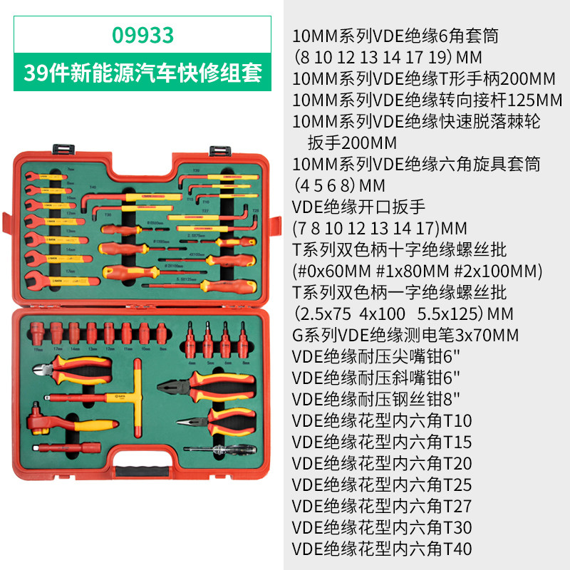 09267 (20 pieces 12 5MM series VDE insulating sleeves 09268 (16 pieces 10MM series VDE insulating sleeves 09933 (39 new energy vehicle fast
