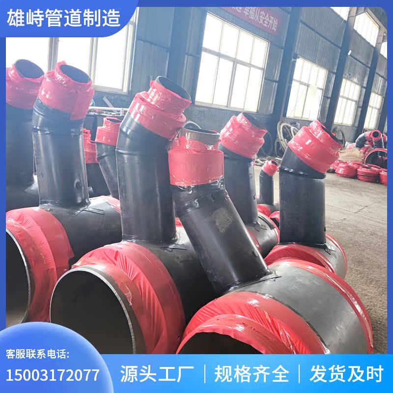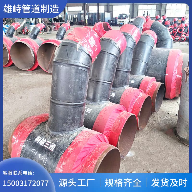 Polyurethane thermal insulation pipe fittings prefabricated foamed direct buried large diameter tee buried heating steel sleeve steel thermal insulation pipe fittings