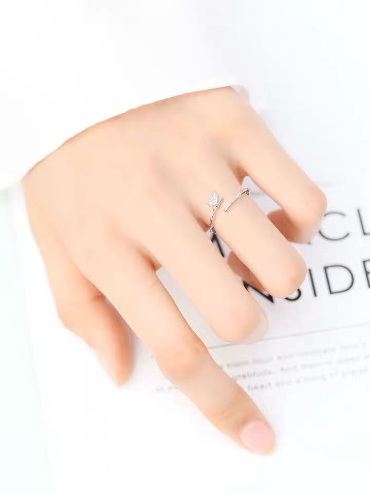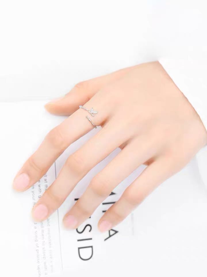 Ins tide personality simple fashion niche design 925 silver adjustment ring female cold wind clear bird see forest index finger ring