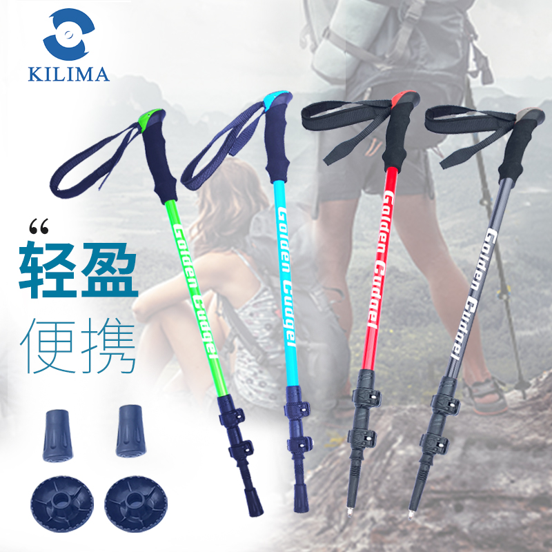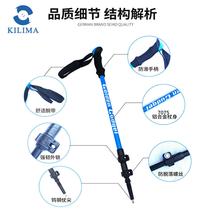 Foreign trade straight handle outer lock trekking stick cane non-slip lightweight mountain climbing hiking equipment outdoor multi-function telescopic crutches