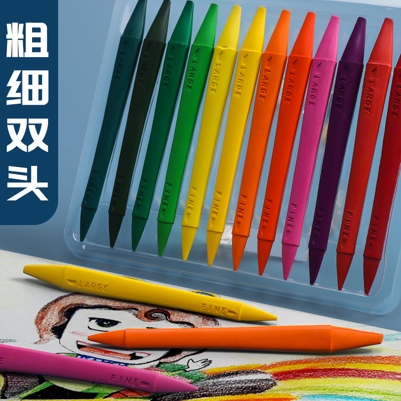 Morning light double head plastic wax pen Children oil painting stick Thickness Suit Kindergarten Elementary School Students 36 Color 24 Color 12 Color 12 Baby Brush Triangle Pen graffiti Colour pen Earthquake resistant and not dirty hand painted pen