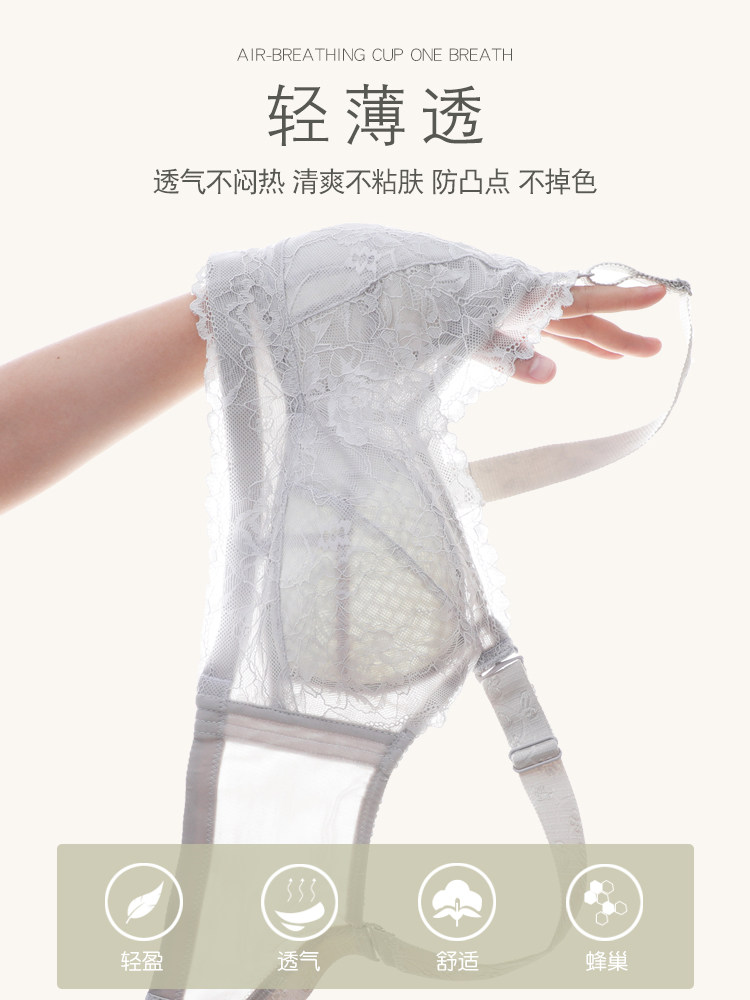 Dianfen lingerie woman no steel ring large breasted bra large size bra large size for gathering lace side to collect auxiliary milk and anti-sagging ultra-thin
