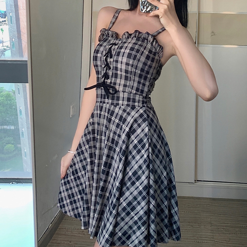 Seiger's new retro plaid lace with high waist and belted skirt-style flat corner with swimsuit and summer conservative students to be thin