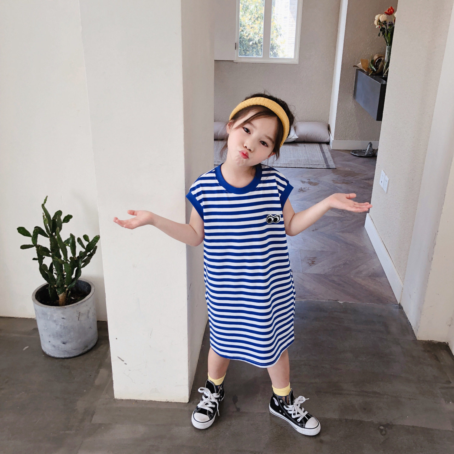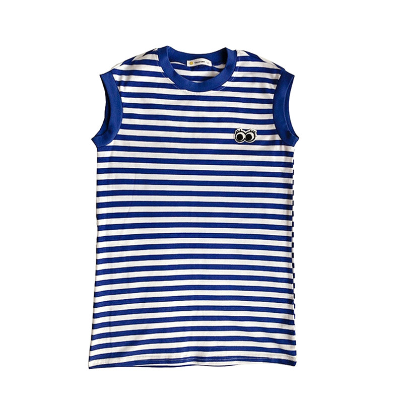 Girl Summer Dress Korean Version Striped T-shirt Dress Little Girl Casual Skirt Children Baby Loose Navy Wind Dress-Taobao