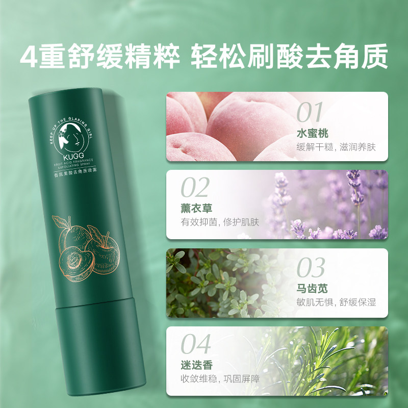 KUGG fragrance fruit acid exfoliating spray fruit acid removes dead skin on elbows, feet, hands, and peach fragrance