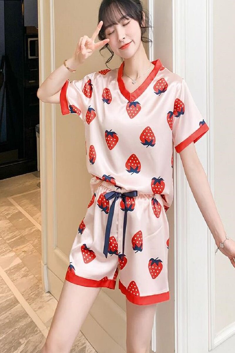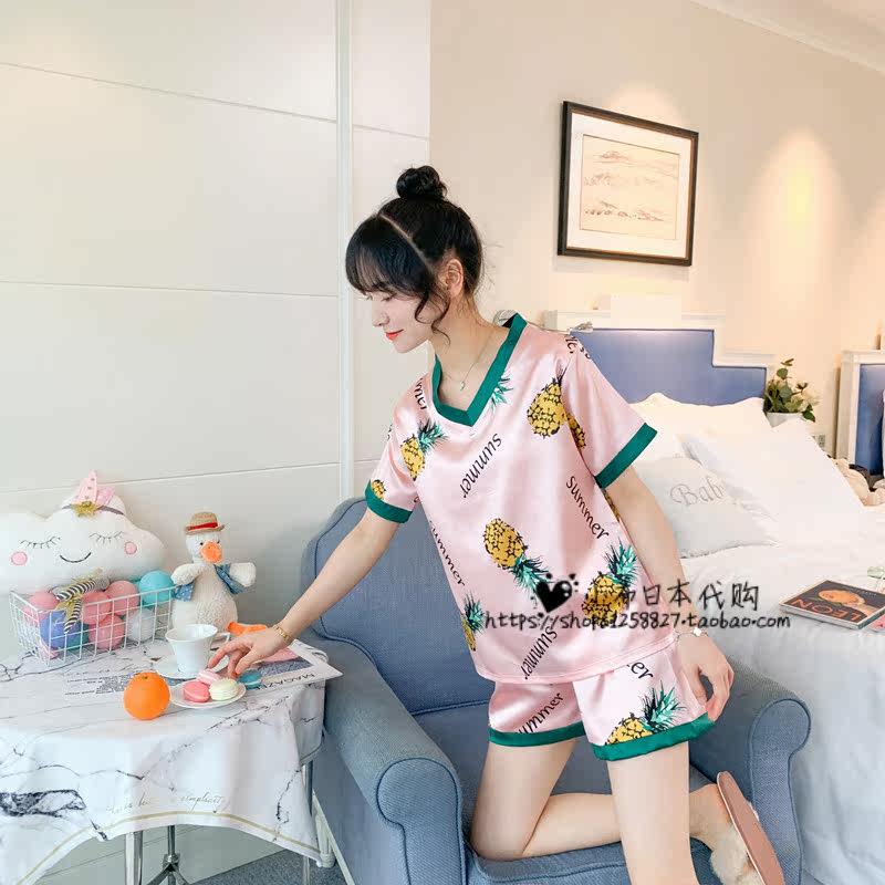 Japan gelato21 Sleepwear Women's Summer Cartoon Short Sleeve Shorts Ice Silk Sexy Cute Sweet Home Suits Suit