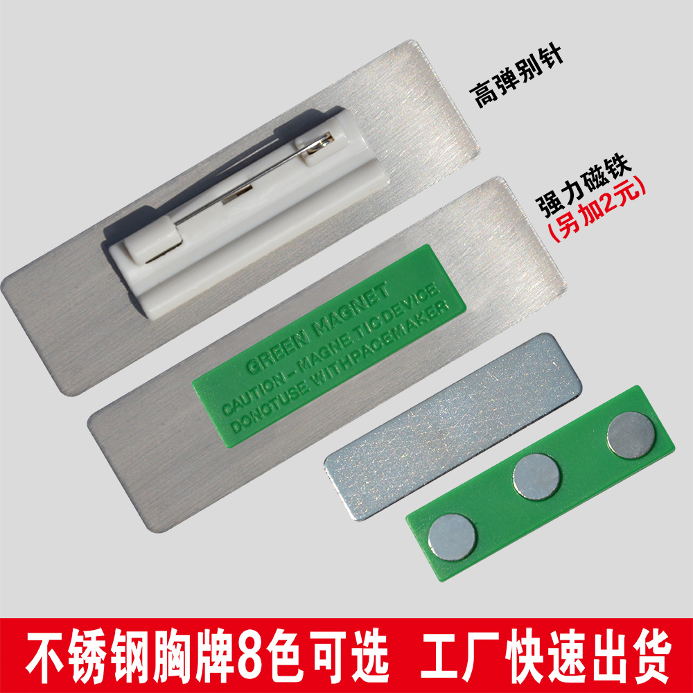 Stainless Steel Breasted set Don't pinchpin magnet Metal work Number of staff Work cards Last name Brand name Brand Custom