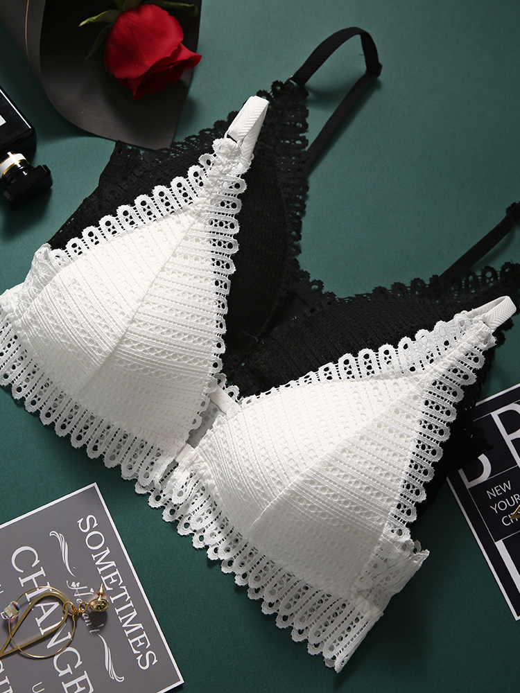 White front buttoned lingerie woman Summer thin breast slim breasted with no steel ring lace sexy apostle hot and beautiful back bra hood