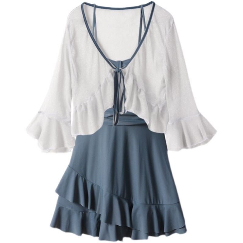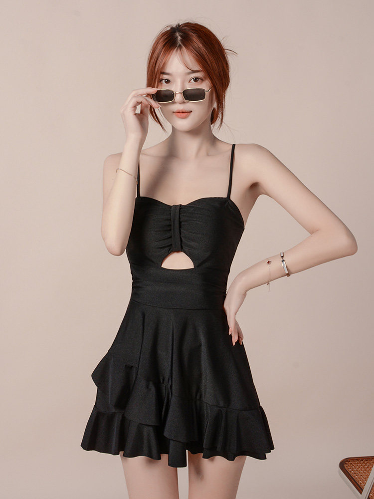 2022 new hot spring swimsuit women conservative cover belly show thin sunscreen gathered large size boxer one-piece swimsuit
