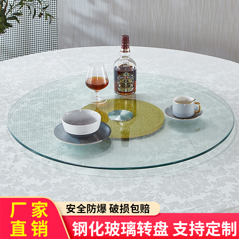 Home steel Tempered Round Glass Disc Hotel Dining Room Tempered Glass Turntable Heatproof Explosion Proof Tempered Glass Turntable