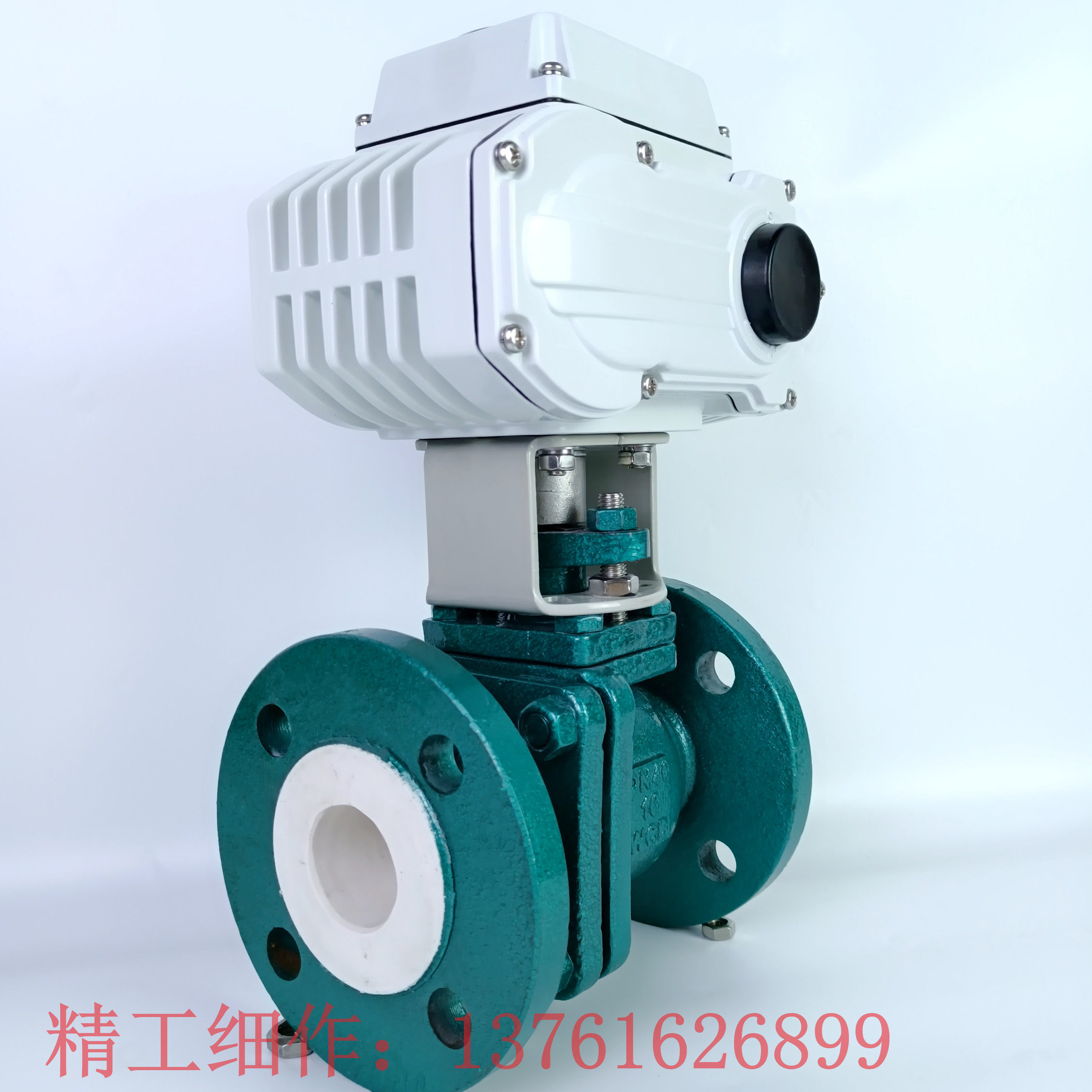 Cast steel lined PTFE electric flanged ball valve Q941F4-16C carbon steel acid-base corrosion-resistant chemical ball valve DN