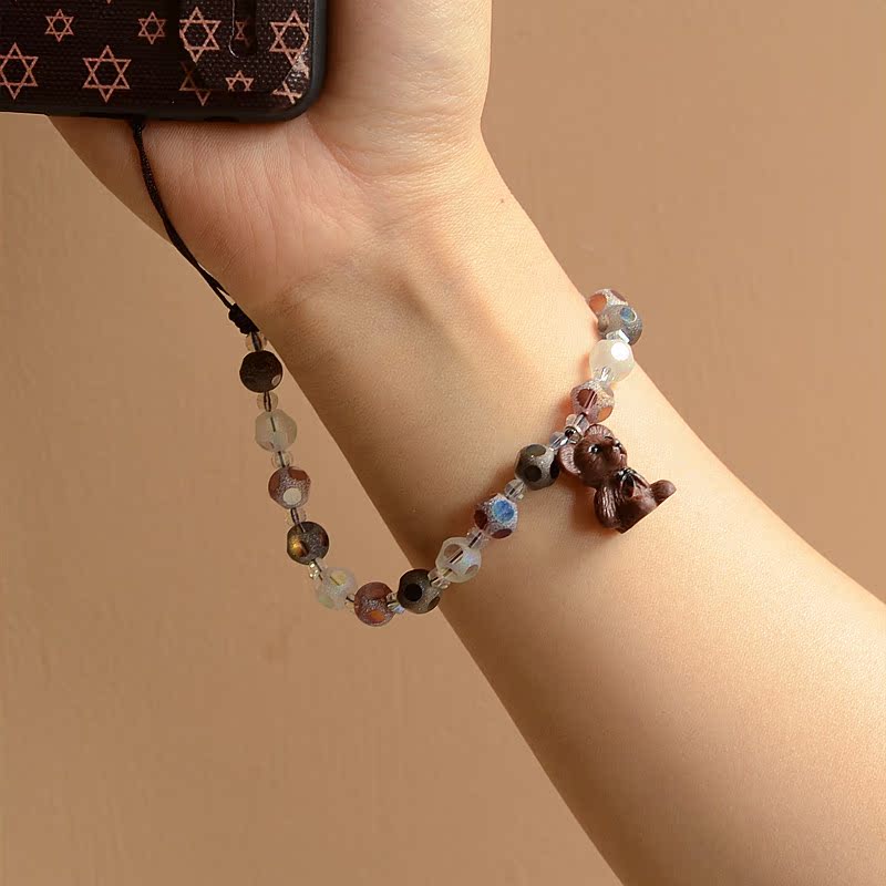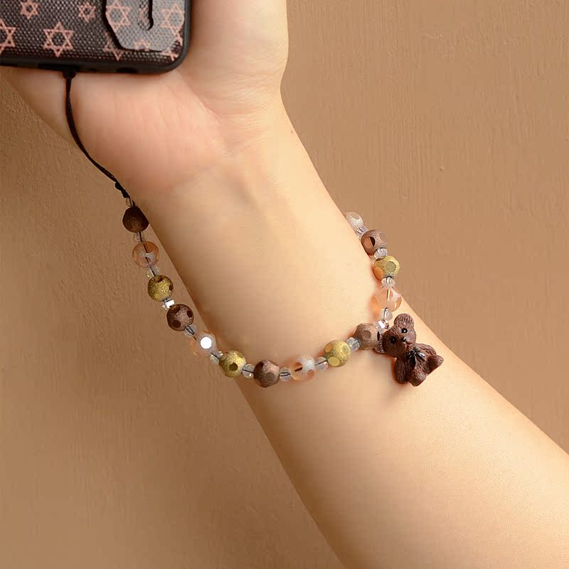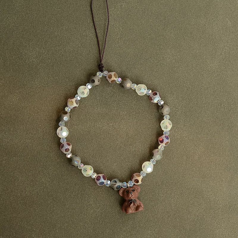 Cute bear artificial crystal mobile phone lanyard female net celebrity short key pendant pendant mobile phone lanyard