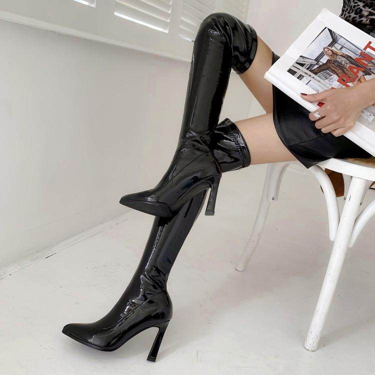 Lacquer Leather Long Boots Woman 2022 Spring new sexy boots over knee long cylinder boots jaz jazz dance High heel Shoe size