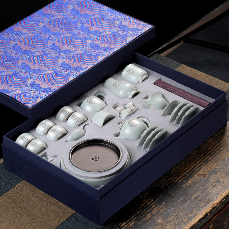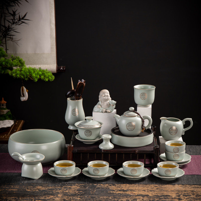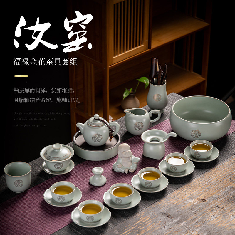High-grade Ru kiln kung fu tea set tea set Ru Dao depicting Jin Ru porcelain household ceramic Jinfu teapot tea cup complete set