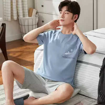 Palandot Men's Pajamas Men's Summer Cotton Short Sleeve Shorts 2021 New Thin Cotton Home Clothing Set