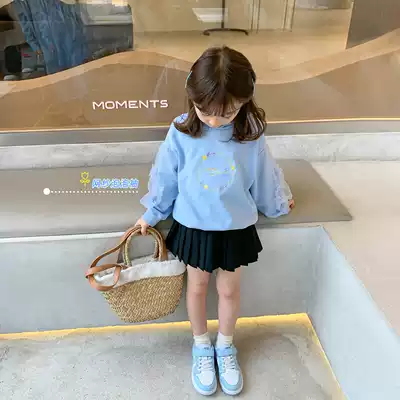 Zuoxi girl thick T-shirt spring and autumn 2021 new middle and big children's net gauze bubble sleeve children's girls coat autumn children's clothing