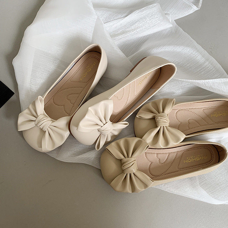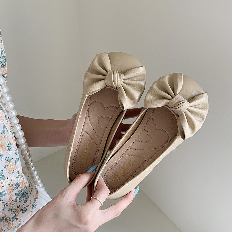 Evening wind single shoes summer women's flat soft bottom 2022 new shallow mouth all-match bow beanie shoes gentle fairy shoes