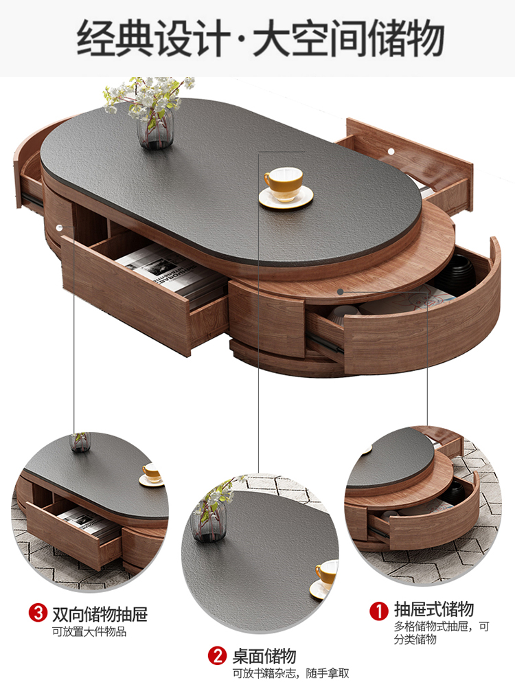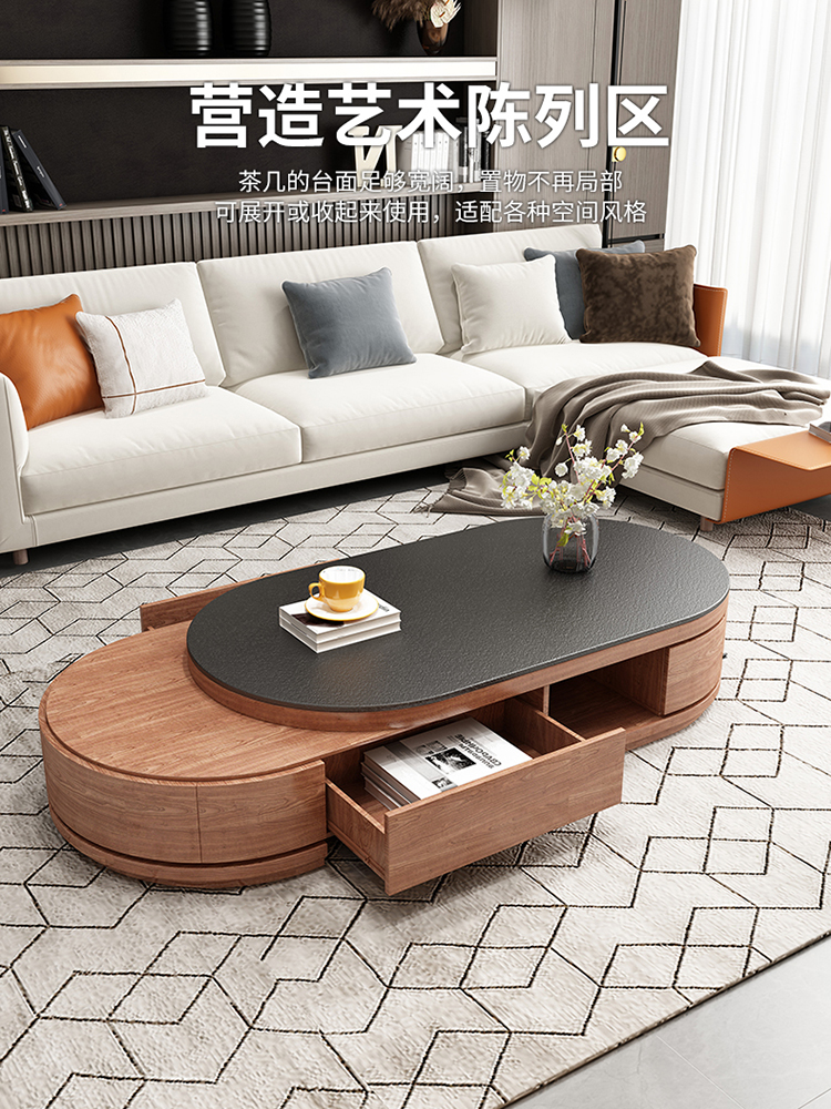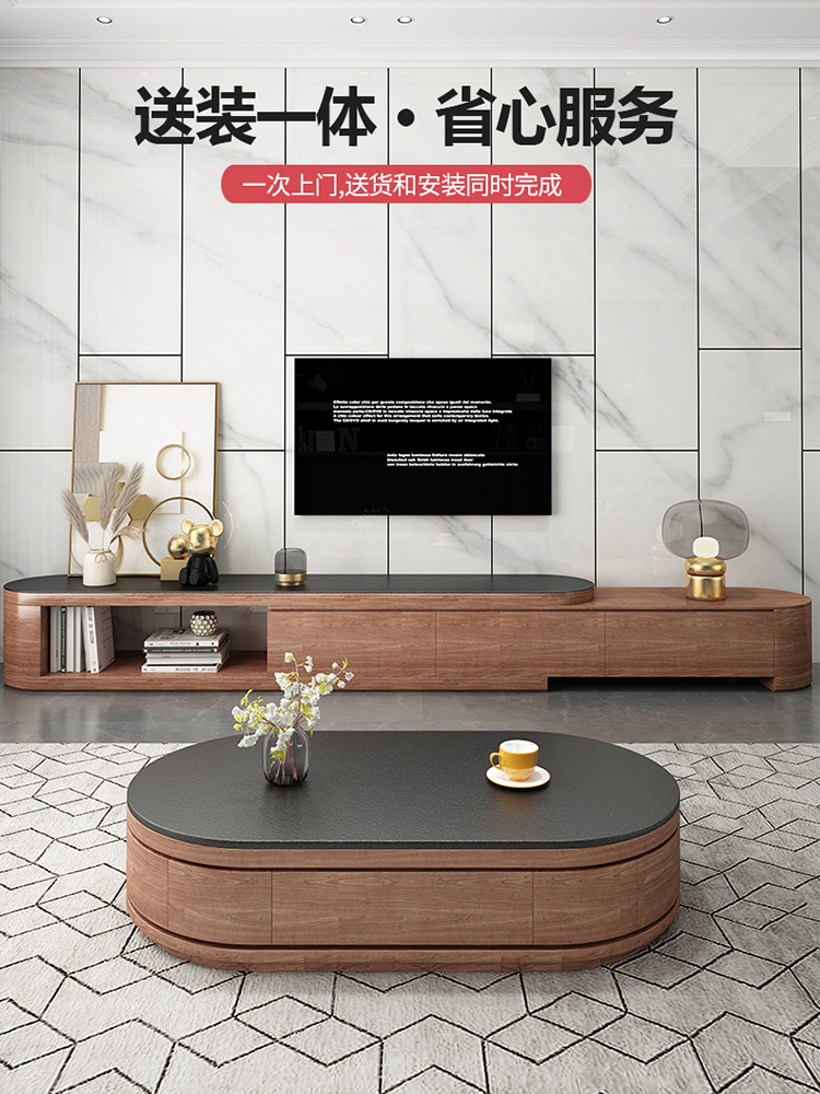 Nordic Fire Stone Coffee Table TV Cabinet Combination Rock Slab Simple Coffee Table Living Room Home Small Household Telescopic Tea Table