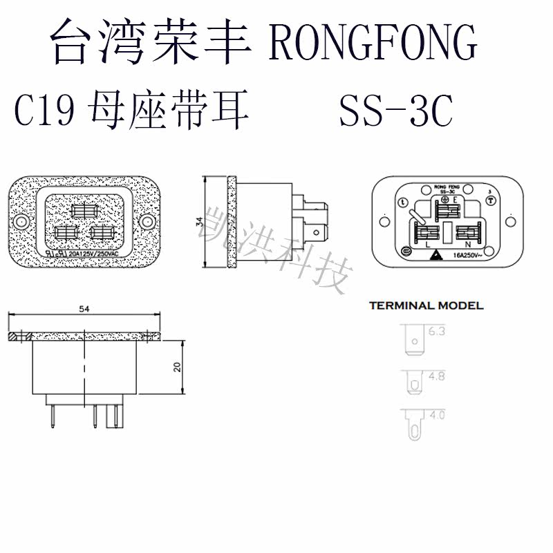 RONGFENG, Taiwan, original 20A power outlet for IEC parent SS-3C power outlet