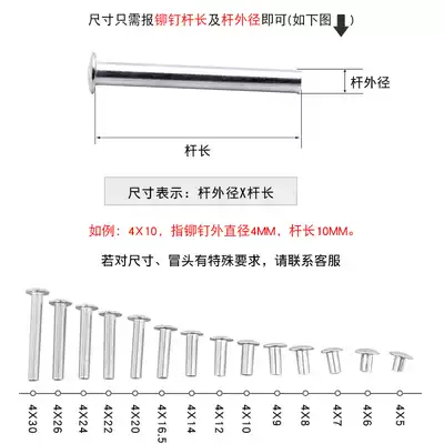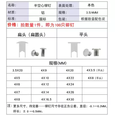 4MM semi-hollow aluminum rivet size flat round head semi-round head flat head countersunk head tail nail is not solid nail Liu Ding