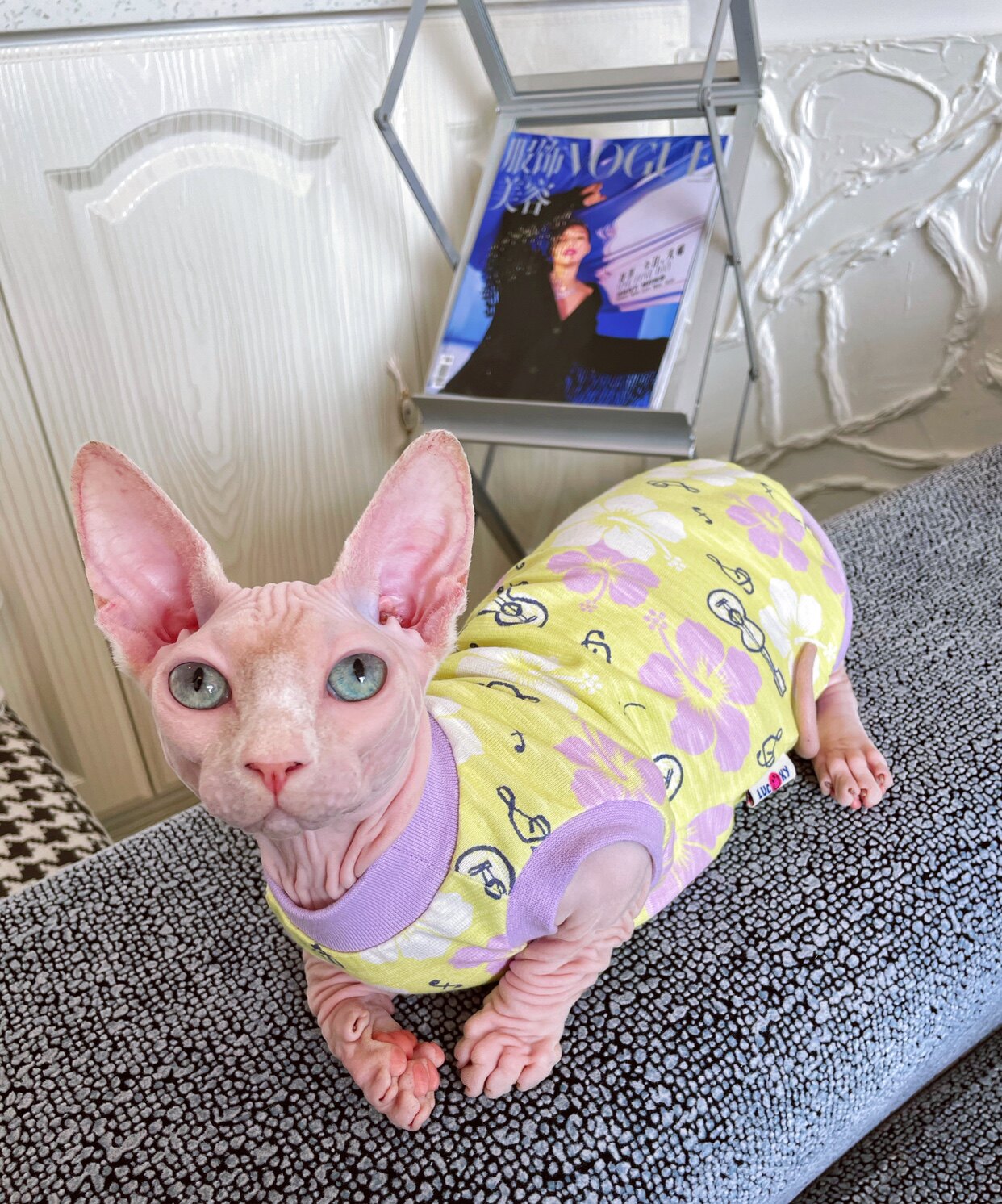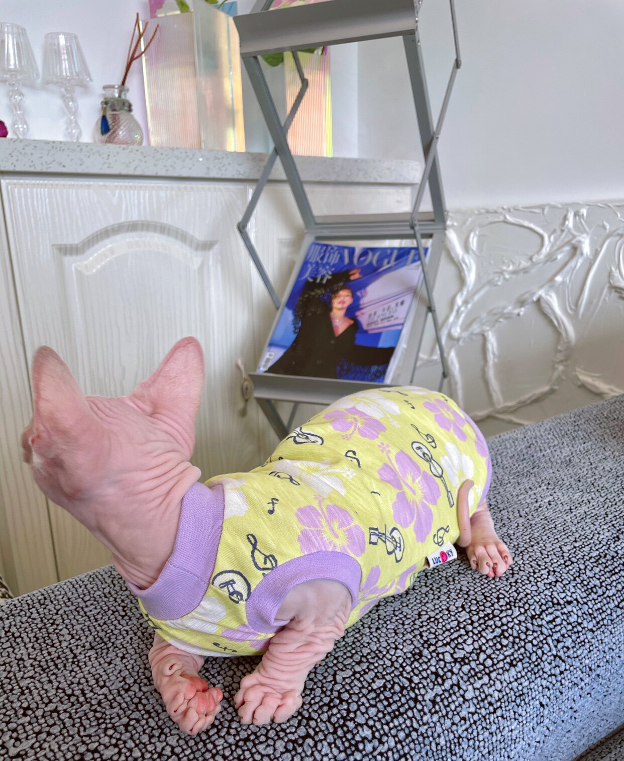 Cream is a hairless cat Spinx German pet cat thin cotton bamboo cotton hole vest breathable