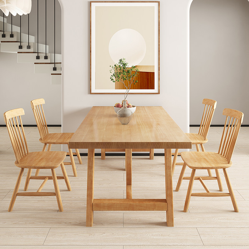 Modern minimalist dining table and chairs combined home dining table dining table pure solid wood strip table dining table log table 1072-Taobao