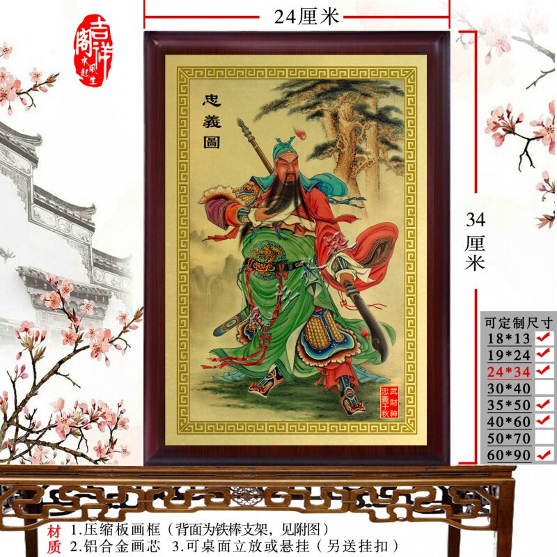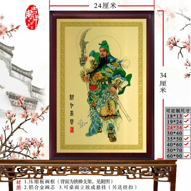 Guan Gong Statue at the mercy of the pendulum and painting Guan Wu the Great and the portrait of the Holy Emperor