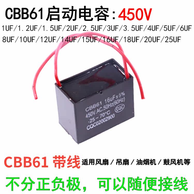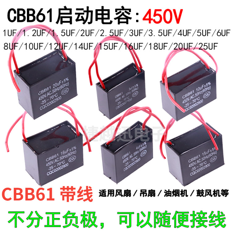 Fan start capacitor CBB61 450V 1 5 1 8 2 2 2 2 2 5 3 4 5UF ceiling fan range hood