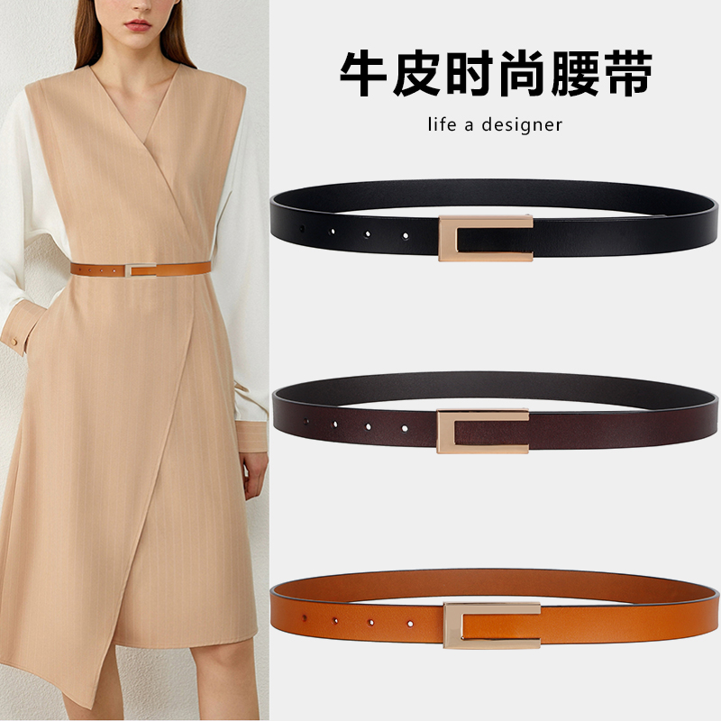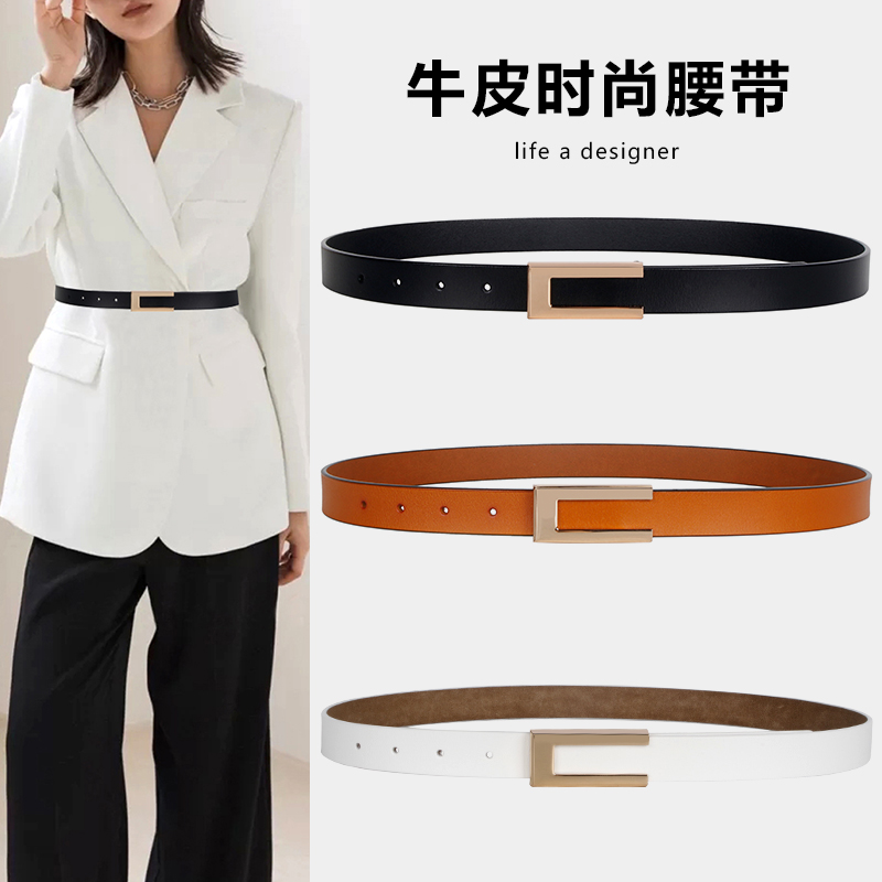 Belt Lady Summer Decoration West Pants Fashion 100 Hitch Genuine Leather Calf Leather Slim Belt Ins Wind White Jeans With Tide