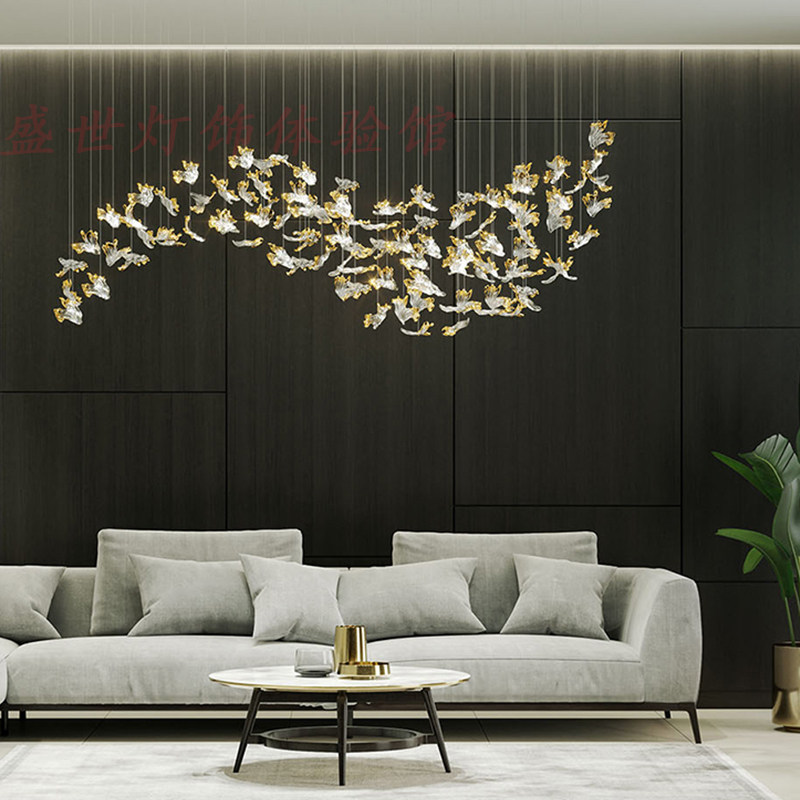 Art Deco Air Pendant Hotel Lobby Middle Court Hanging Accessories Sample House Display Center Ceiling Decoration Creative Maple Leaf Pendant