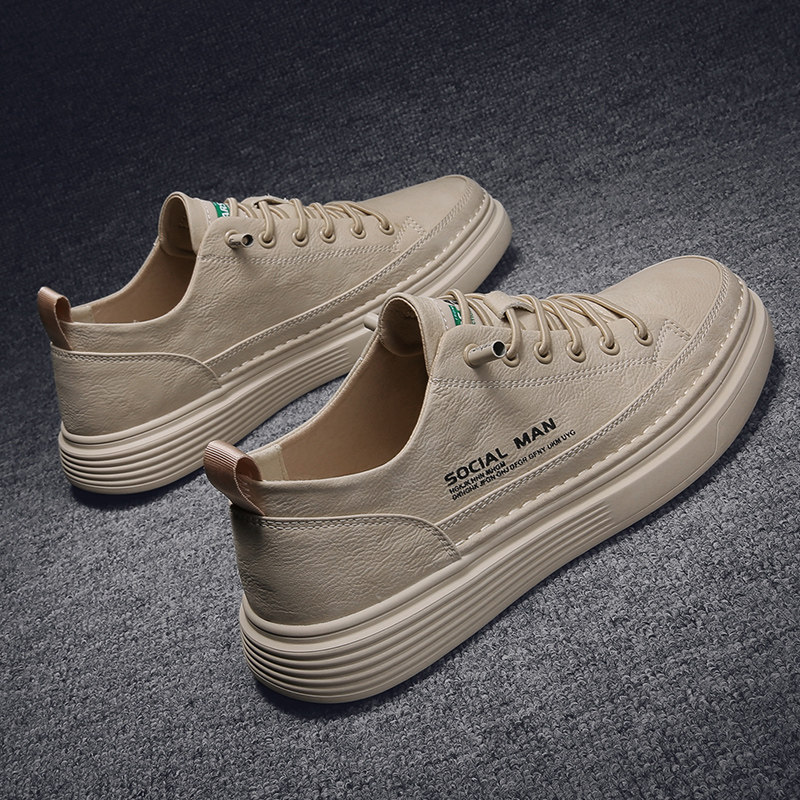 Men Shoes 2022 New Spring Autumn Season Trends 100 Hitch Plate Shoes Men Interior Heightening Casual Waterproof Leather Face Wave Shoes